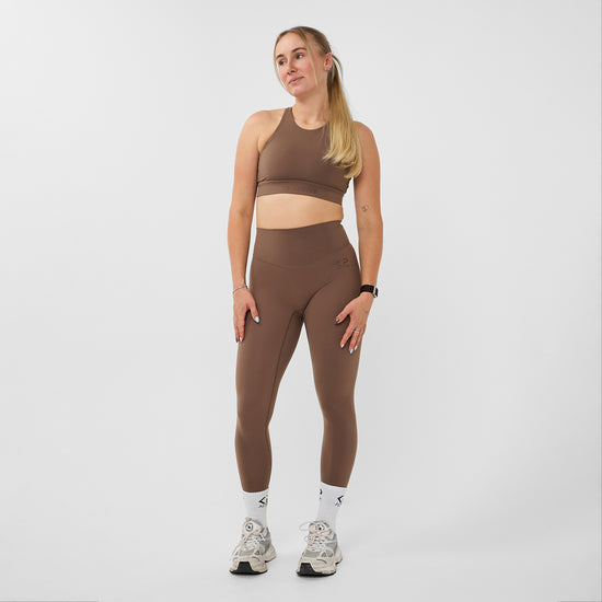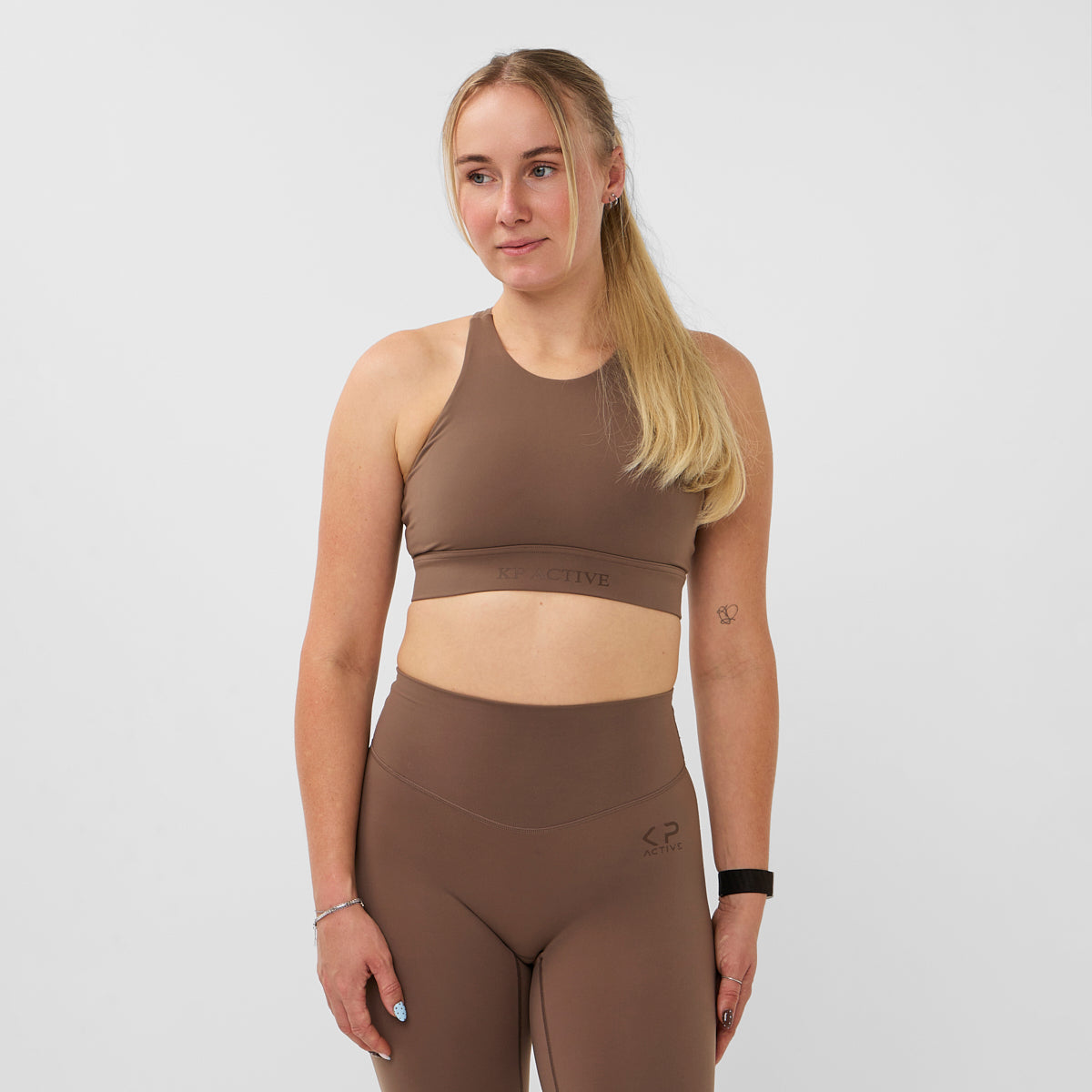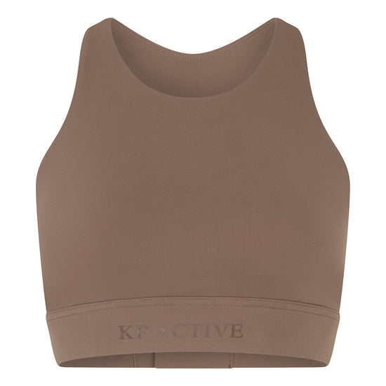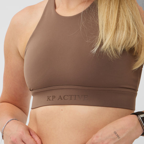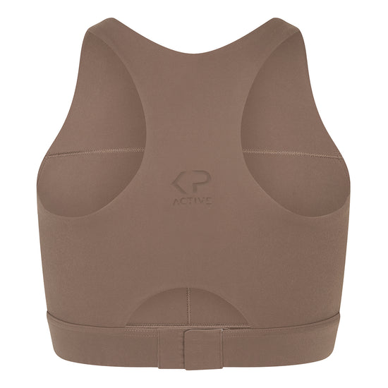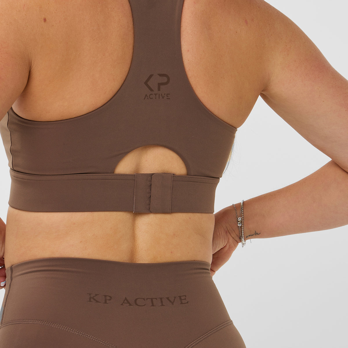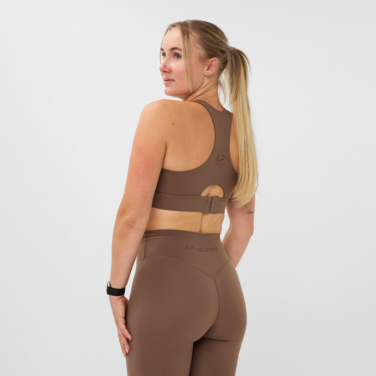 Smooth as your morning latte, the Cappuccino Brown Sports Bra offers high support and an adjustable fit.