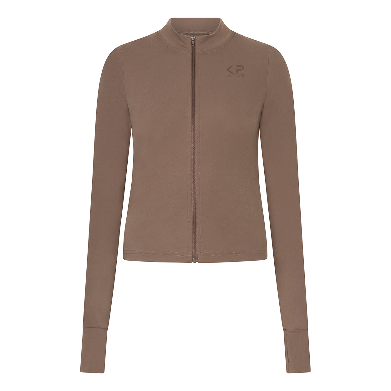 The Cappuccino Brown Zipper Jacket is crafted from a super-soft 68% Nylon / 32% Spandex blend that feels light and breathable yet warm enough for cool mornings.
