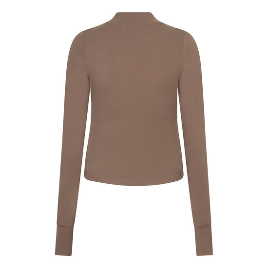 The rich cappuccino shade and clean zipper design make it easy to style beyond the gym.