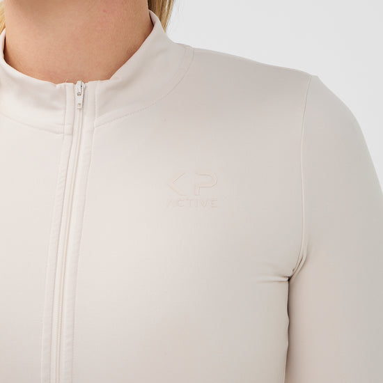 The Iced Latte Zipper Jacket layers easily for workouts or casual days.