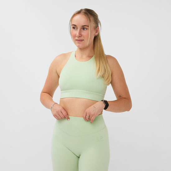 Fresh and vibrant, the Matcha Green Sports Bra provides high support with an adjustable back for a personalised fit.