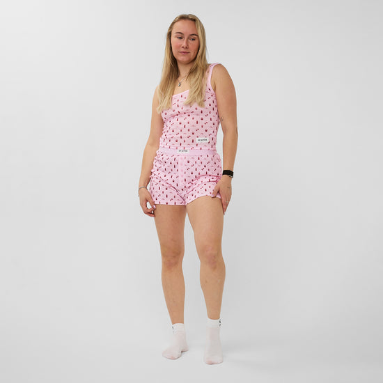 The tank top and shorts are made from a stretchy, breathable fabric that feels ultra-smooth on your skin.