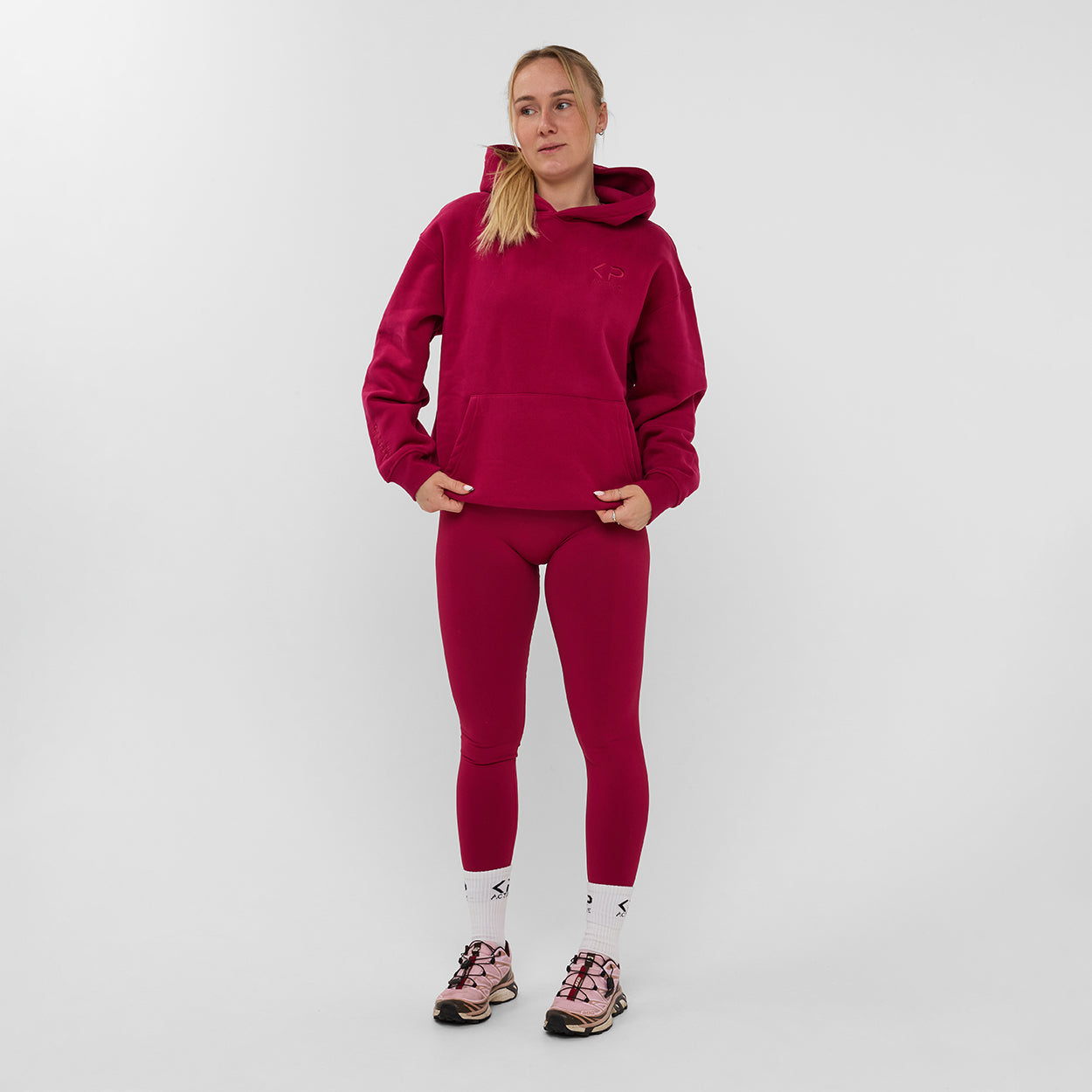 The Classic Hoodie in Cherry Red adds a statement to your everyday look. Designed with a soft fleece interior and a regular unisex fit, this hoodie offers the perfect balance between comfort and style. Finished with embroidered KP Active logos for a premium, elevated feel — whether you’re heading to a workout or styling it off-duty.