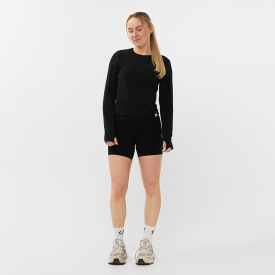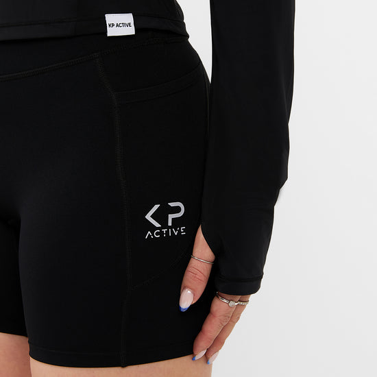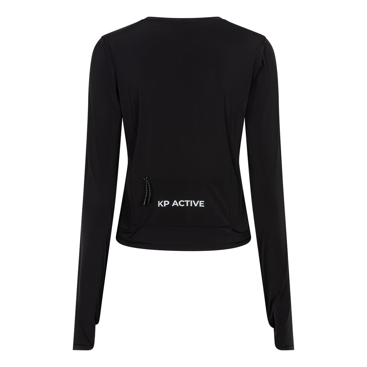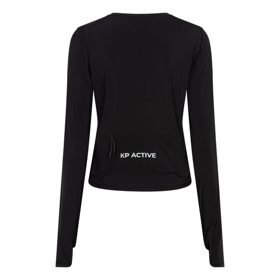 The KP Active Mesh Longsleeve in black is designed for performance, breathability, and a sleek, minimal look.