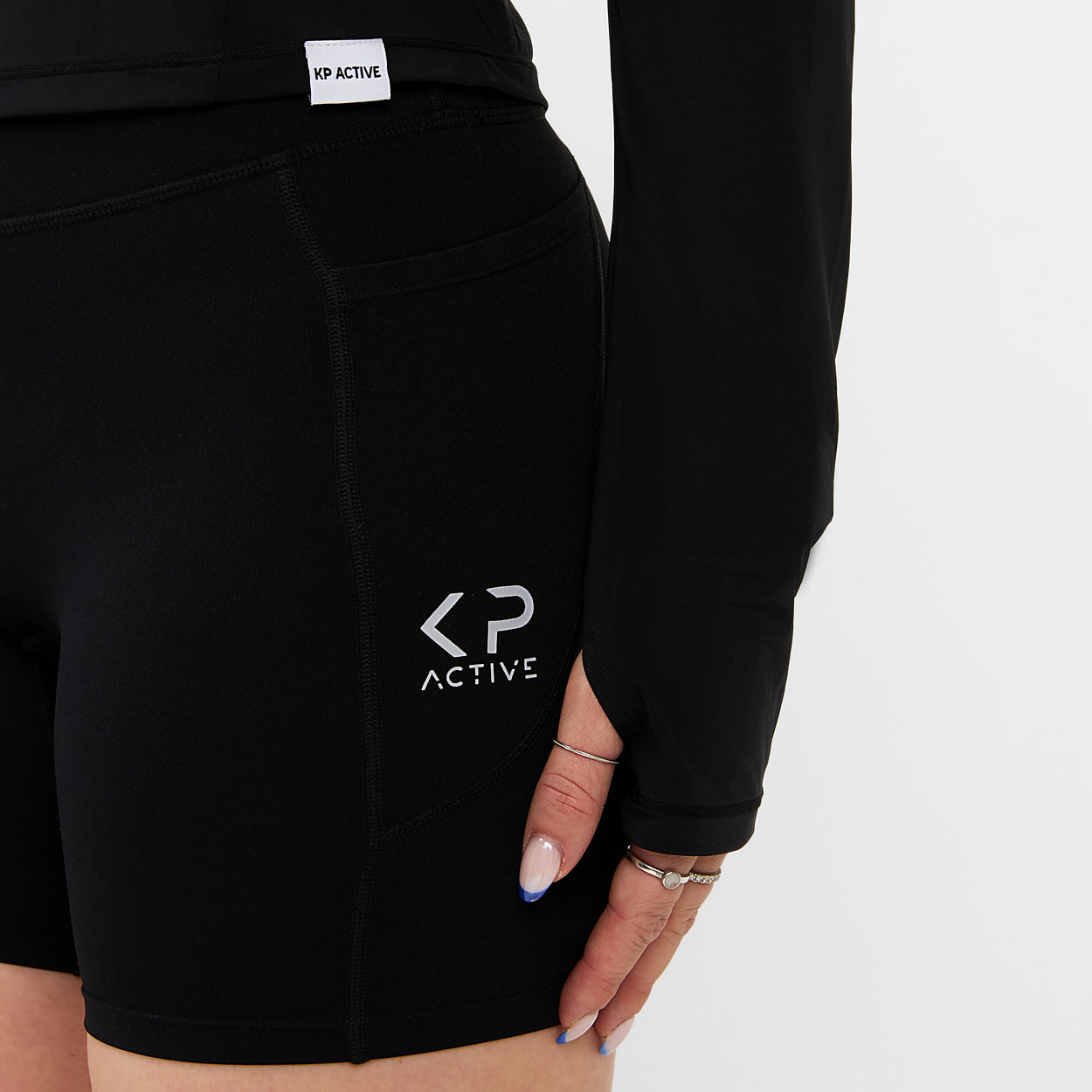 Featuring thumb holes for a secure fit and a reflective KP Active logo on the back for added visibility in low-light conditions. On the back, you’ll also find a subtle pocket for small essentials.