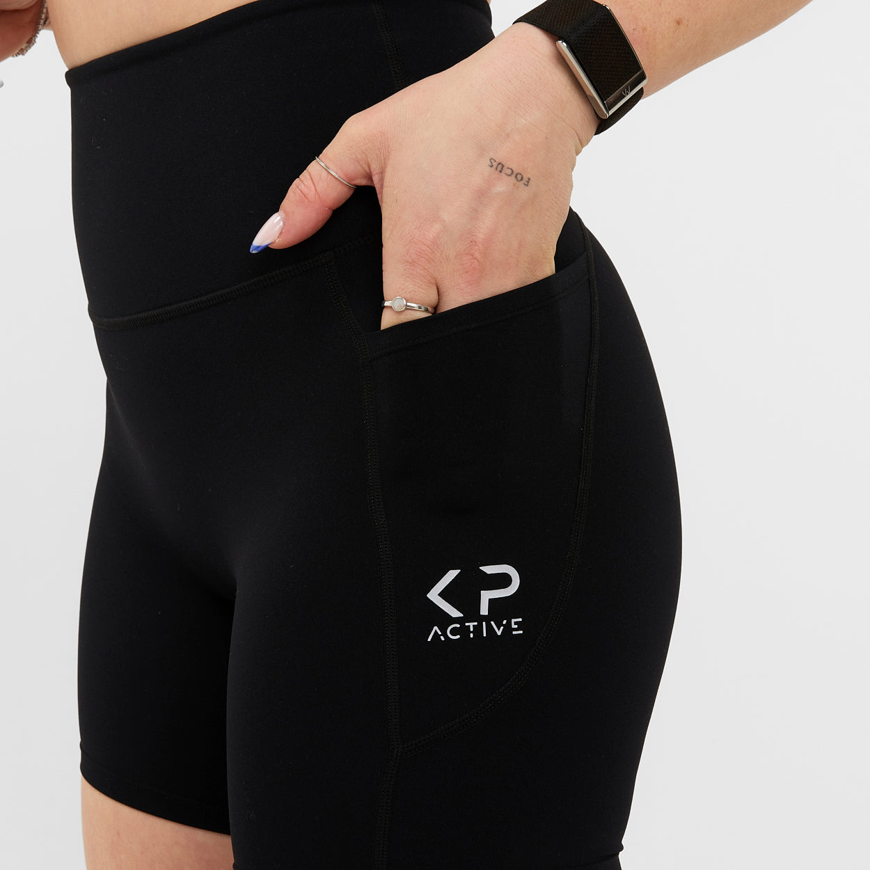 Featuring a practical side pocket for small essentials and reflective KP Active logos for added visibility in low-light conditions. An extra layer at the crotch ensures full coverage, so you never have to worry about your underwear showing through.